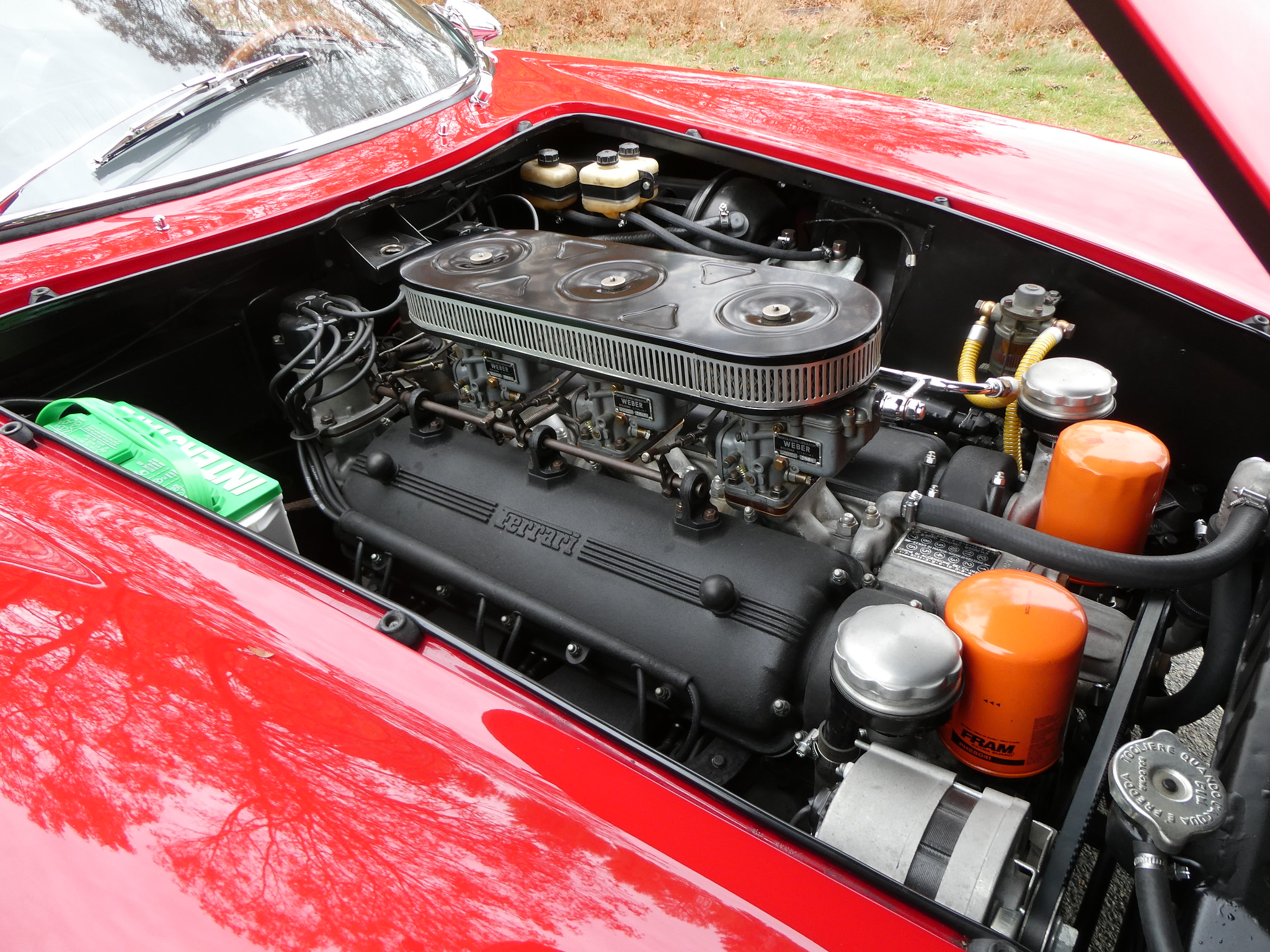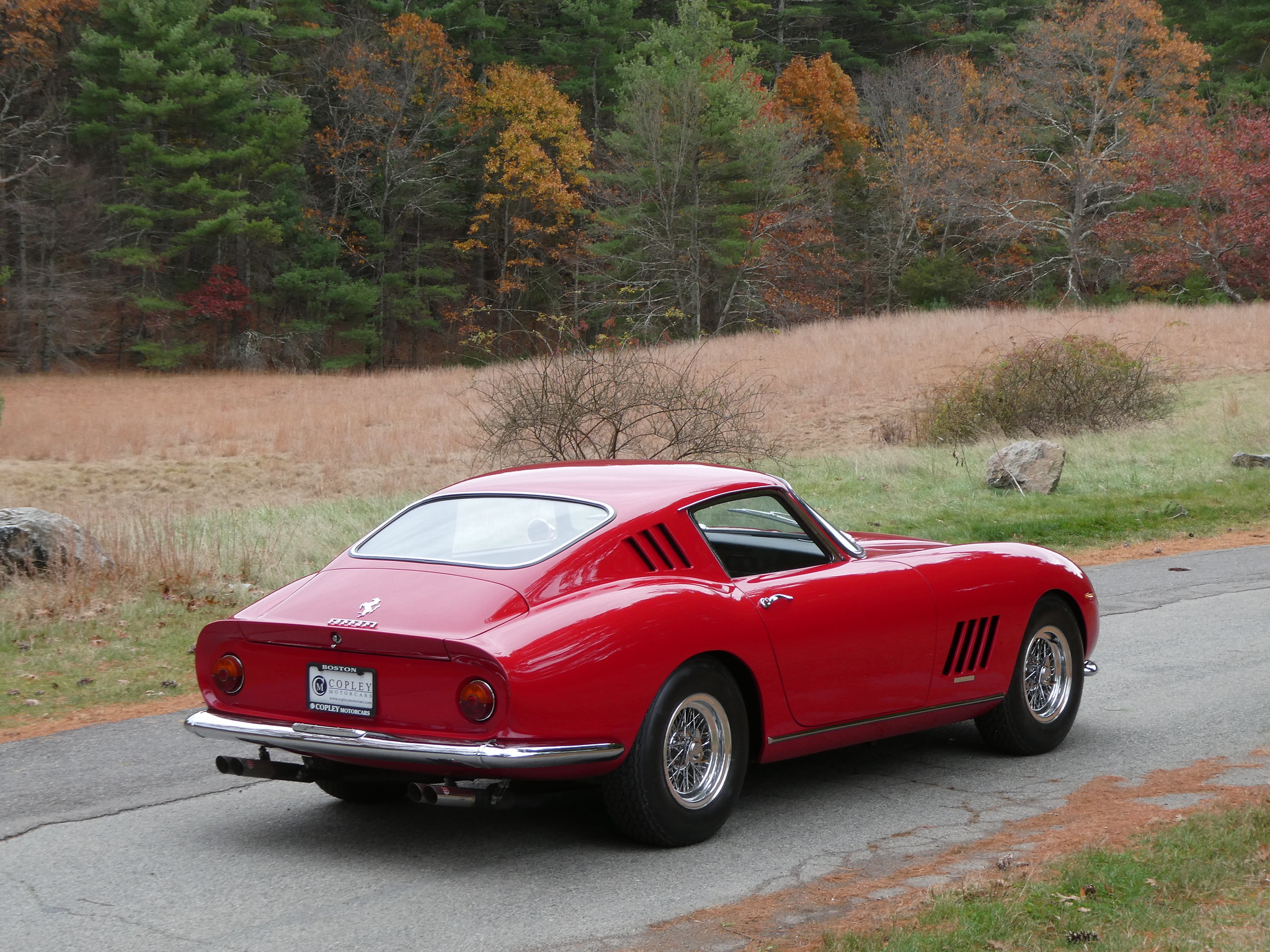 Stunning from any angle, the profile of the 275 GTB short nose is one of the most beautiful ever. Designed by Pininfarina and built by Scaglietti, the short nose 275 the first iteration of this much revered grand tourer. Nearly 800 275 GTB of all types were built from 1964 – 1968, with just 250 of the short nose. Chassis Number 06787 was completed at the factory in February 1965 as a steel body European example and delivered new into Italy. The 275 was fitted with a Colombo Type 213 3.3 litre V12 engine with three Weber carburetors making 280hp, and mated to a 5 speed rear-mounted transaxle providing ideal weight distribution. 06787 would find its way to the states in the early 1970s and color changed from its original Grigio to a “candy apple red metal flake,” as reported by Swiss Ferrari historian Marcel Massini’s detailed history report. It would seem at that time as well that the wood dash was extended to the passenger side removing the glove box, and the quarter vent windows removed and replaced with power full glass windows. (The designer himself, Battista Pininfarina, did not like the quarter vent window and built for himself one of the very first 275 GTB without the vent window on the driver’s side – 275 GTB Speciale Chassis Number 06437.) At the start of the new millennium, the 275’s engine was rebuilt by noted Ferrari engine builder, Rick Bunkfeldt’s Vintage Restoration Services of Hartland, Wisconsin. Shortly thereafter, a driver-quality repainting was performed and the 275 sold to its next owner who in 2010 would commission a proper cosmetic restoration to include a bare metal repainting, interior re-trim, re-chroming, and detailing. The current owner purchased 06787 in 2024 and embarked upon a comprehensive mechanical servicing and sorting tallying some $135,000.00 with Ferrari specialist workshop, Ken and Darin McCay’s Boston Sportscar. Looking fantastic today, the short nose retains its matching numbers original engine and 5 speed gearbox, and of course the signature beautiful profile.