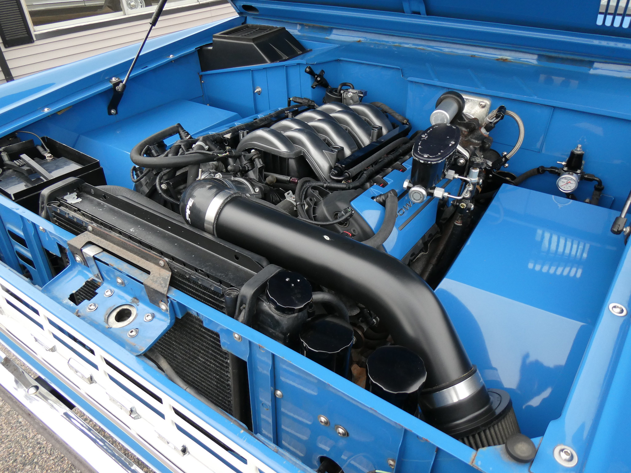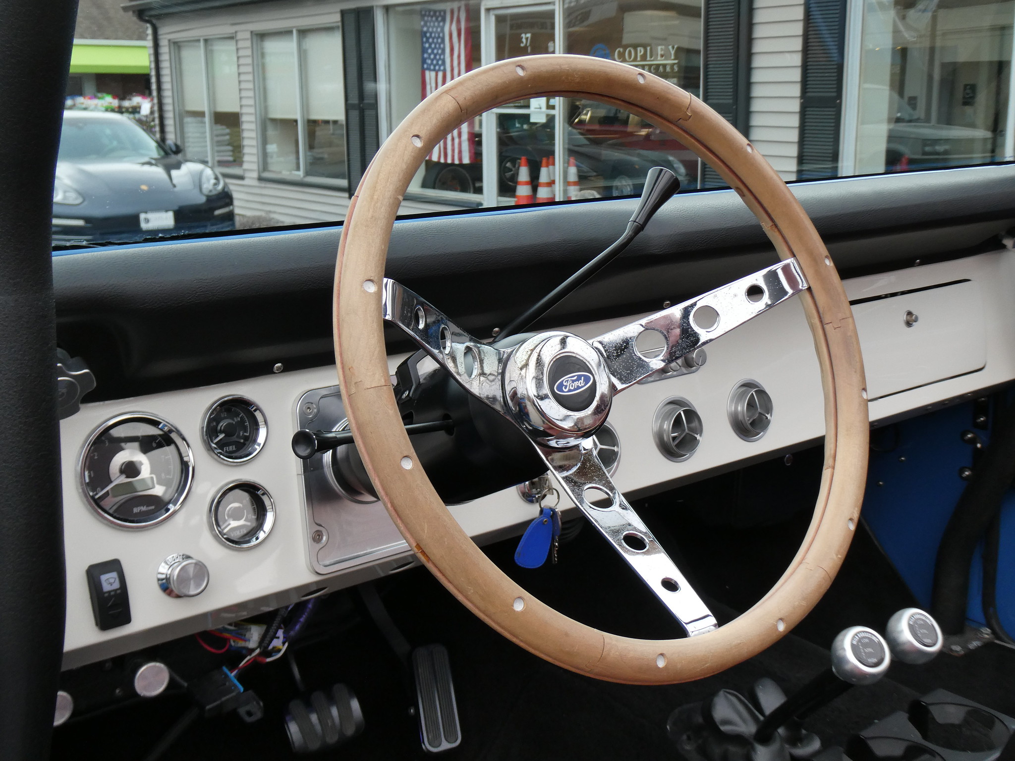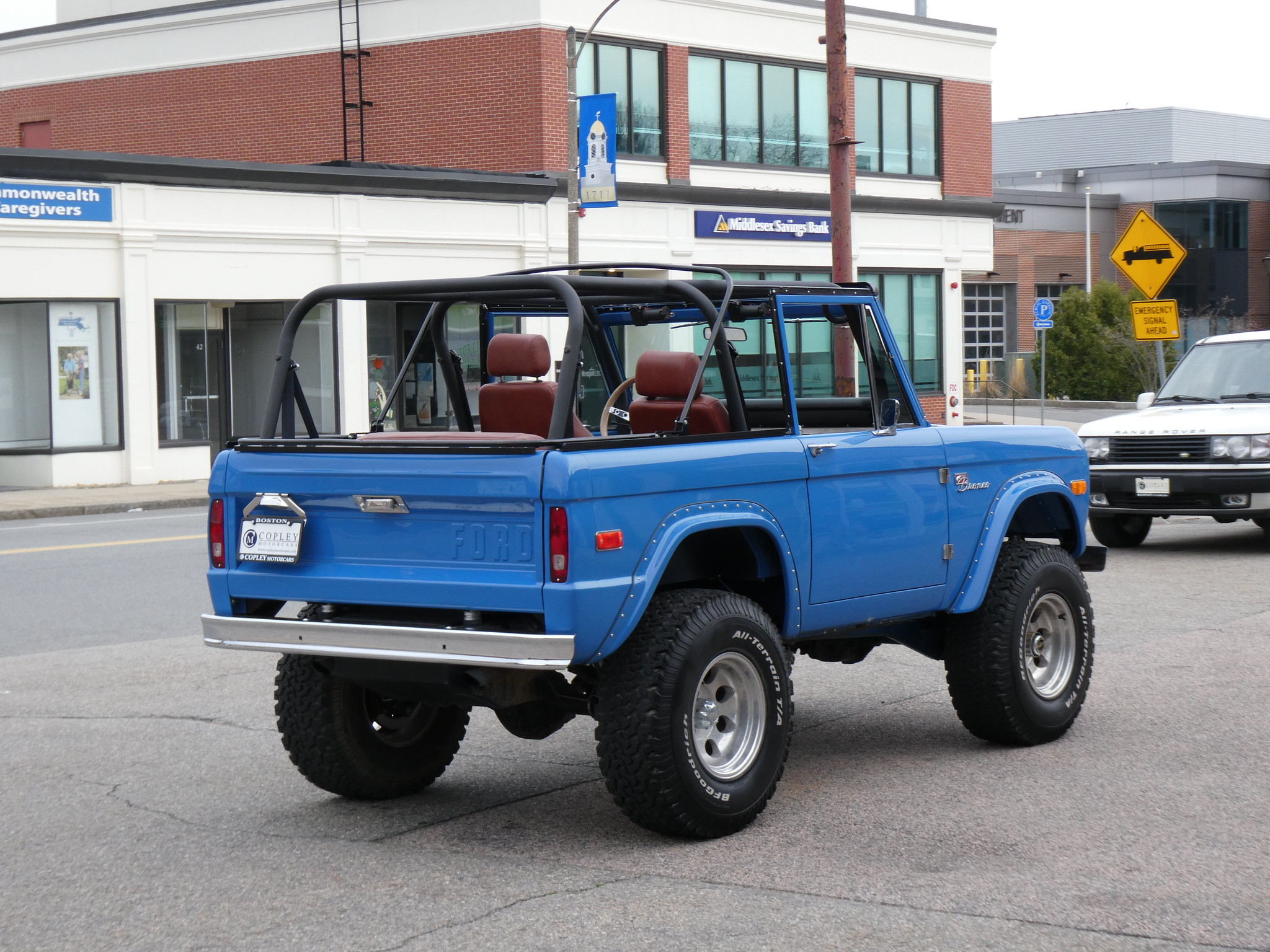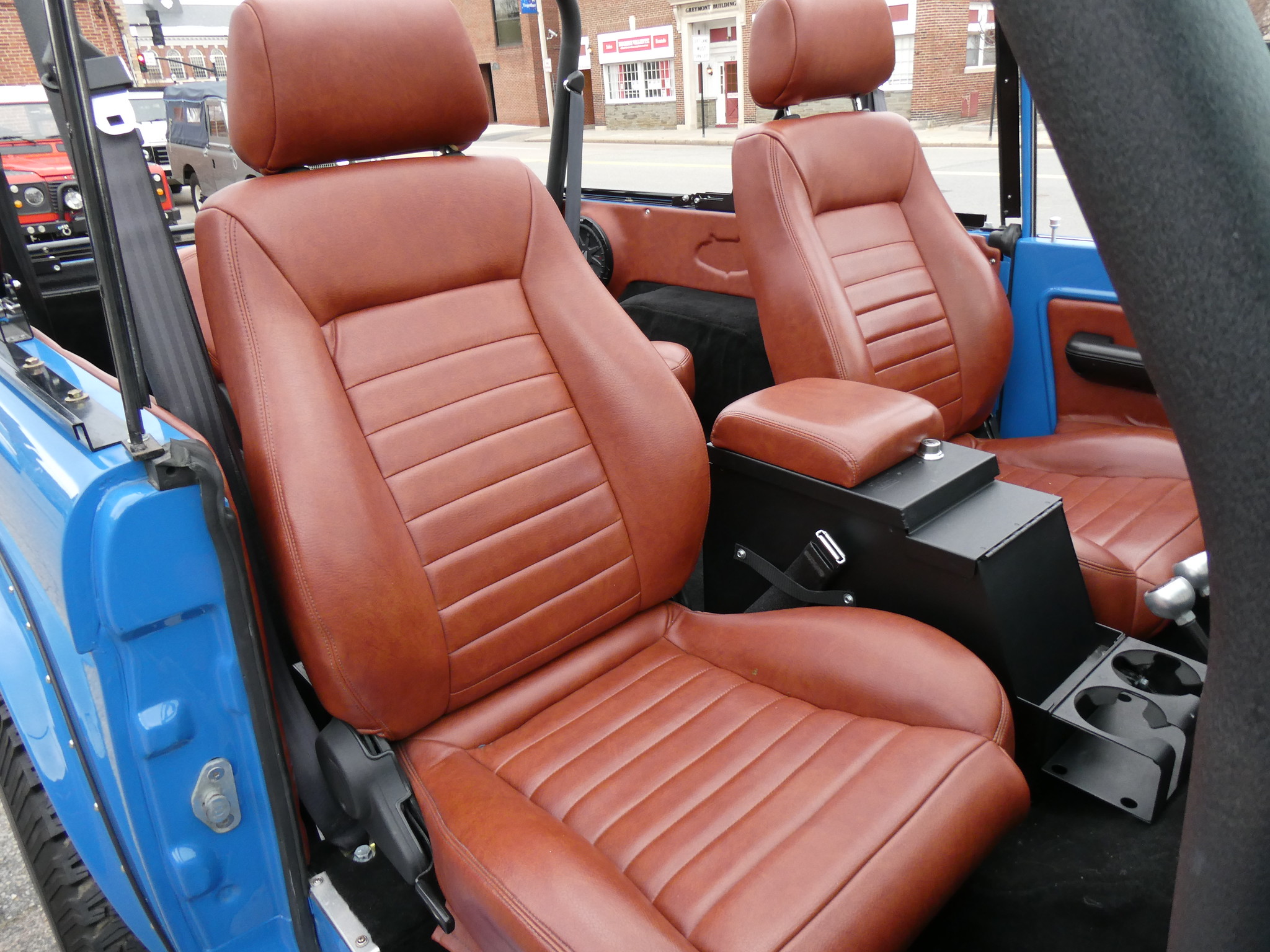 1977 Ford Bronco by Custom Ford Bronco, Bahama Blue with ball glove leather, 5.0 litre Ford Coyote engine making 395hp with 400lb-ft of torque, Ford 4 speed automatic transmission, four wheel drive with high-low range, power steering, Wildwood power disc brakes, forward facing rear bench seat for two with 3-point seat belts, full removable soft top, automatic electric side steps, TuffyBox center cubby, Pioneer hi-fi sound system, integrated roll cage, a first generation Bronco restored a handful of years ago by Bronco specialist Custom Ford Bronco, and just coming to us after several years of family fun at the beach.
