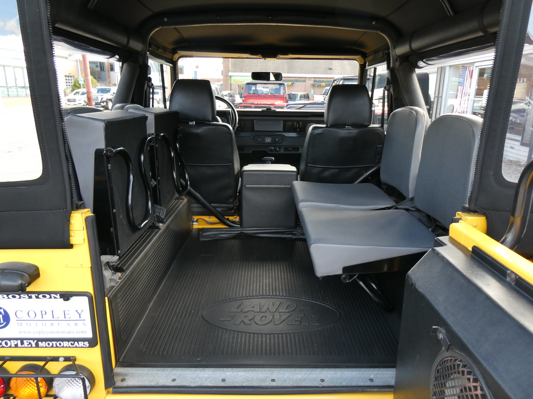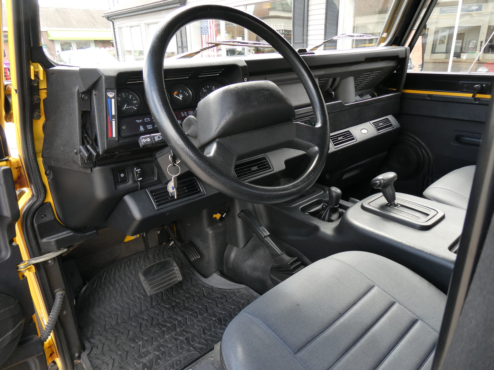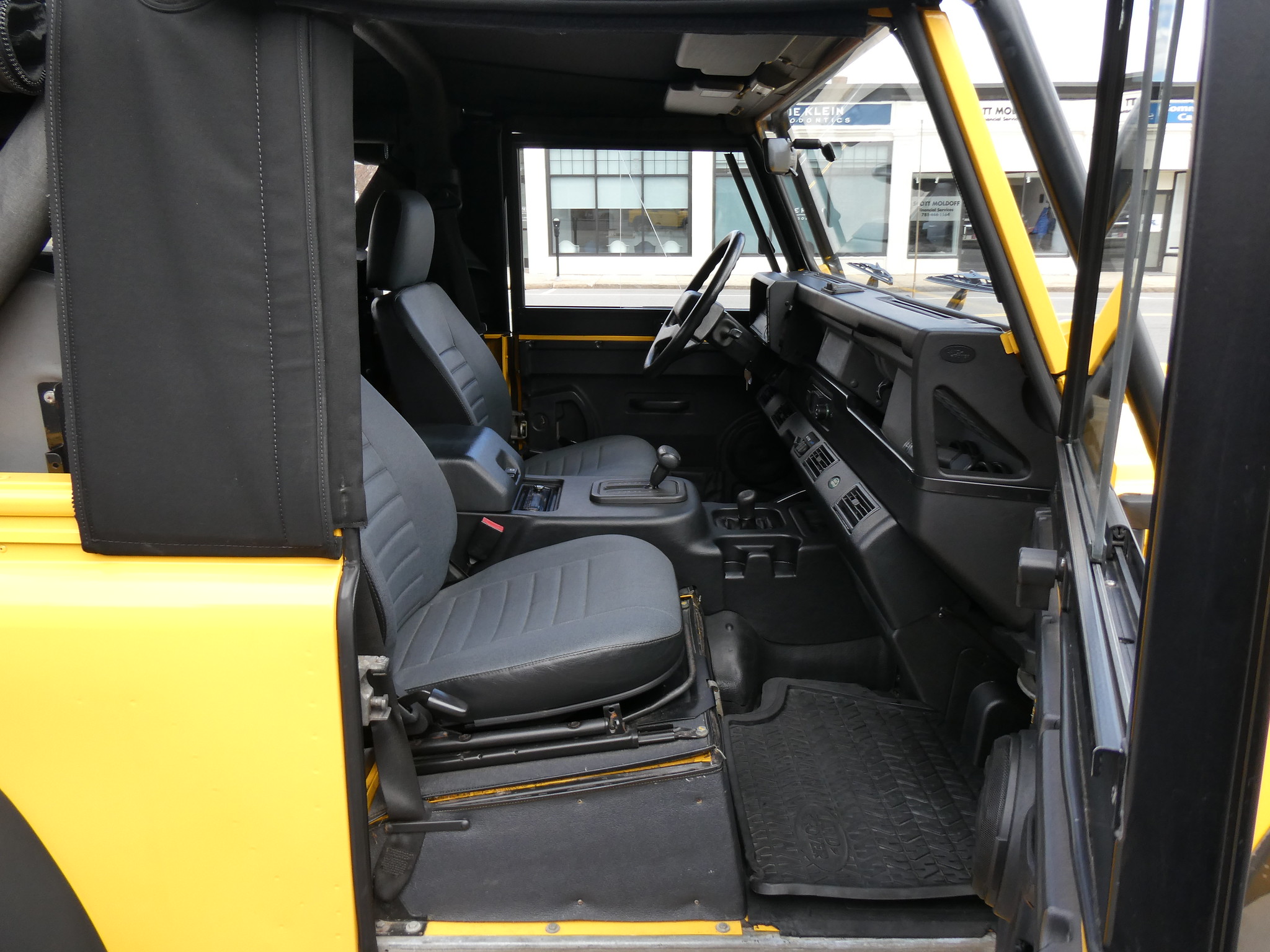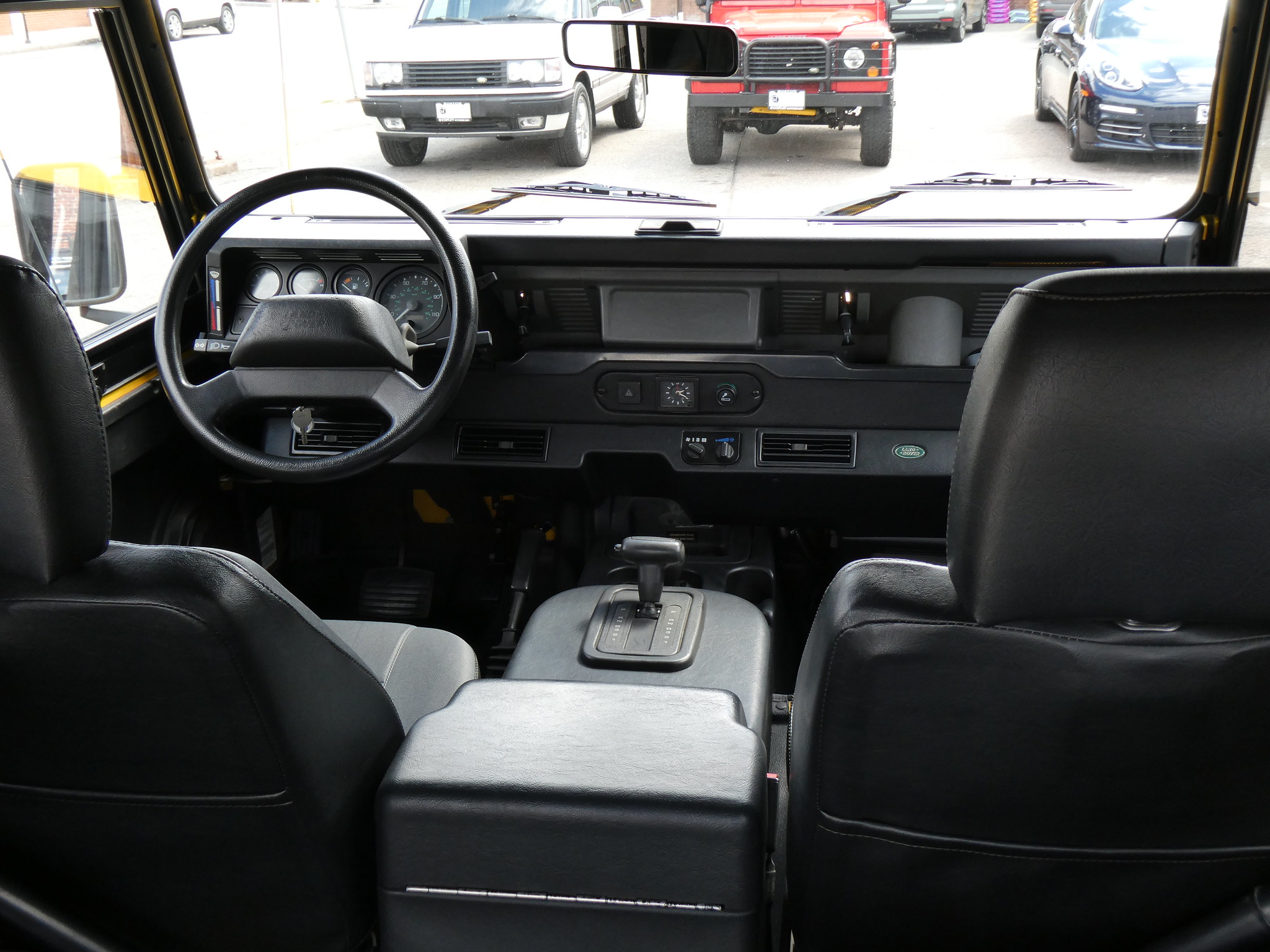 1997 Land Rover NAS Defender 90 soft top, S/N SALDV2246VA111502, AA Yellow with grey twill vinyl seat upholstery, full safari cage, full updated soft top with zip/roll-up windows, full time 4 wheel drive with high-low range, automatic transmission, air conditioning, Freestyle alloy wheels, front brush guard, front bumper integrated 9000lb Warn winch, side steps, rear lamp guards, 4 side facing rear seats with seat belts, delivered new June 30, 1997 via Land Rover Colorado Springs, complete with original owner’s manuals and spare keys, in the Copley family since 2009, an authentic North American Specification Defender 90, and one of just 371 in AA Yellow from the final year of import by Land Rover North America.