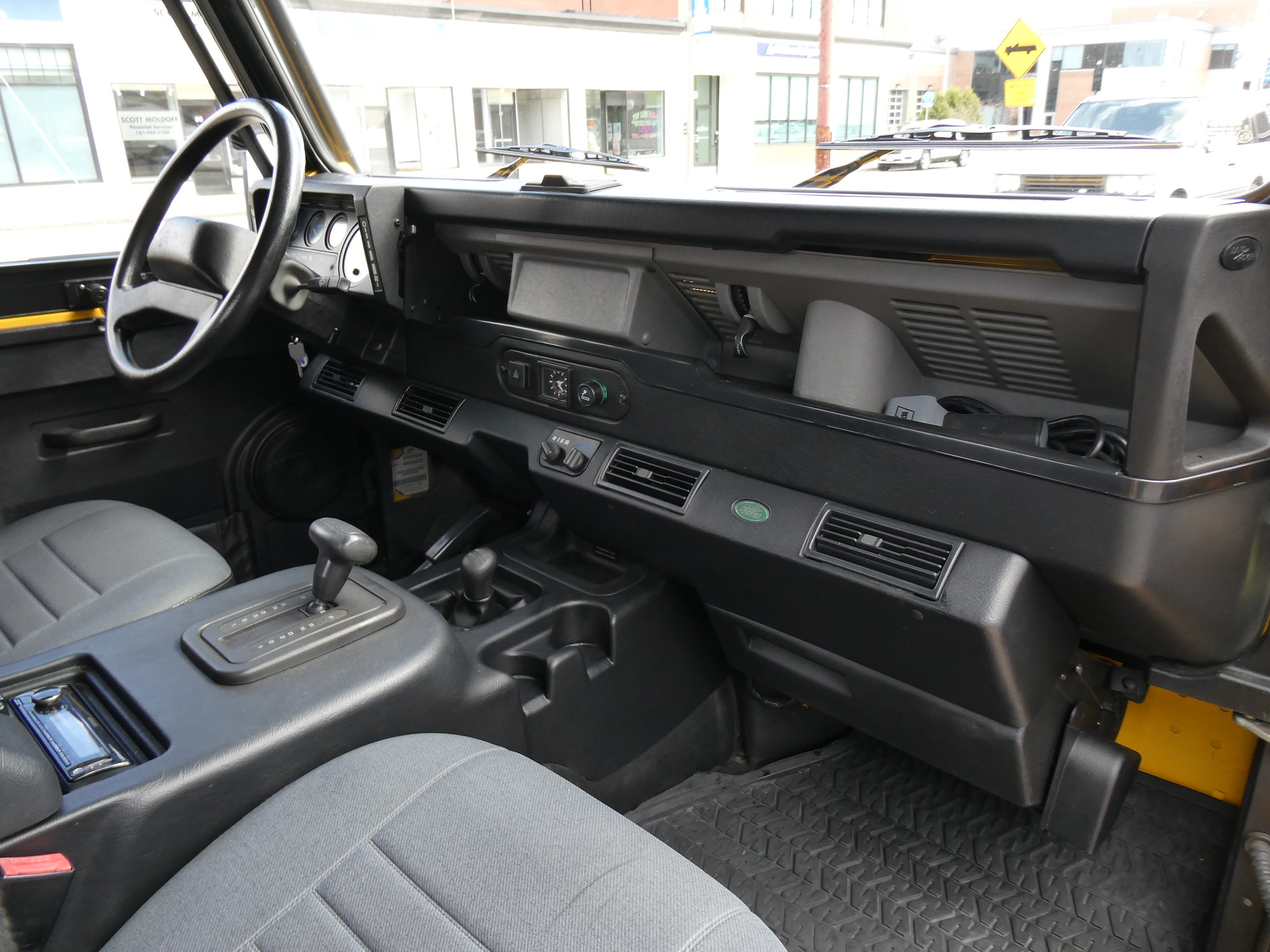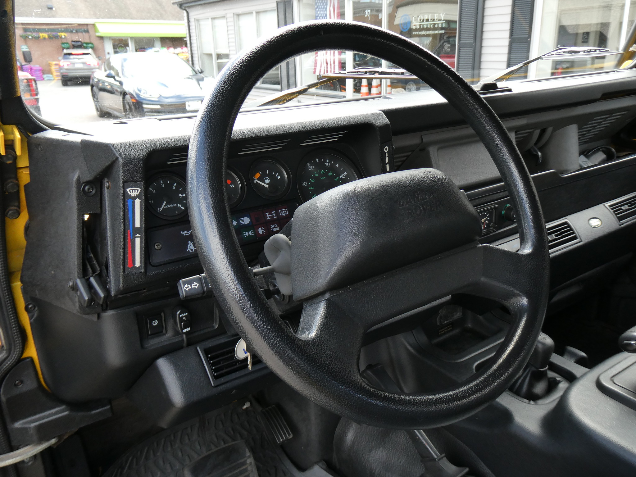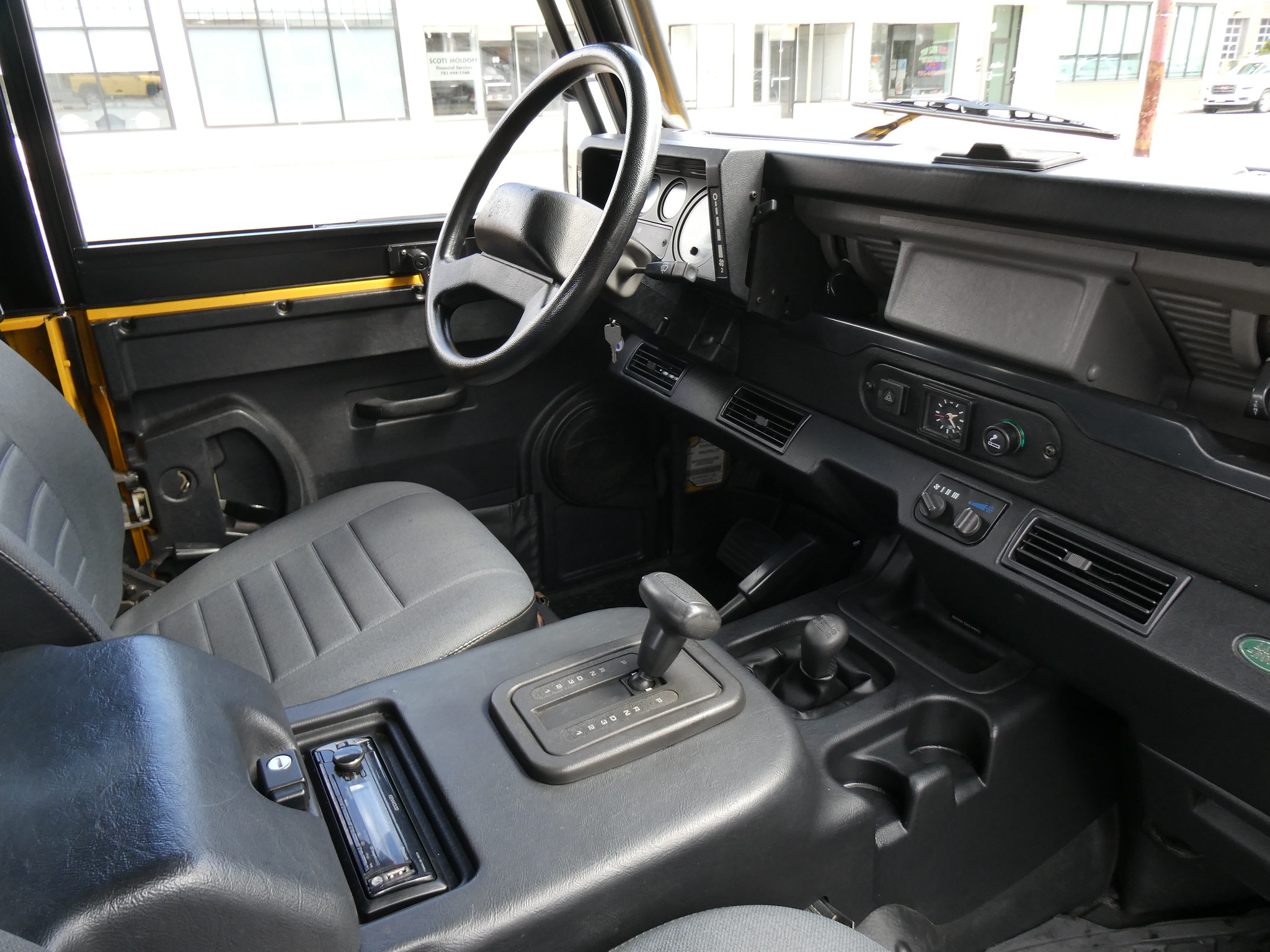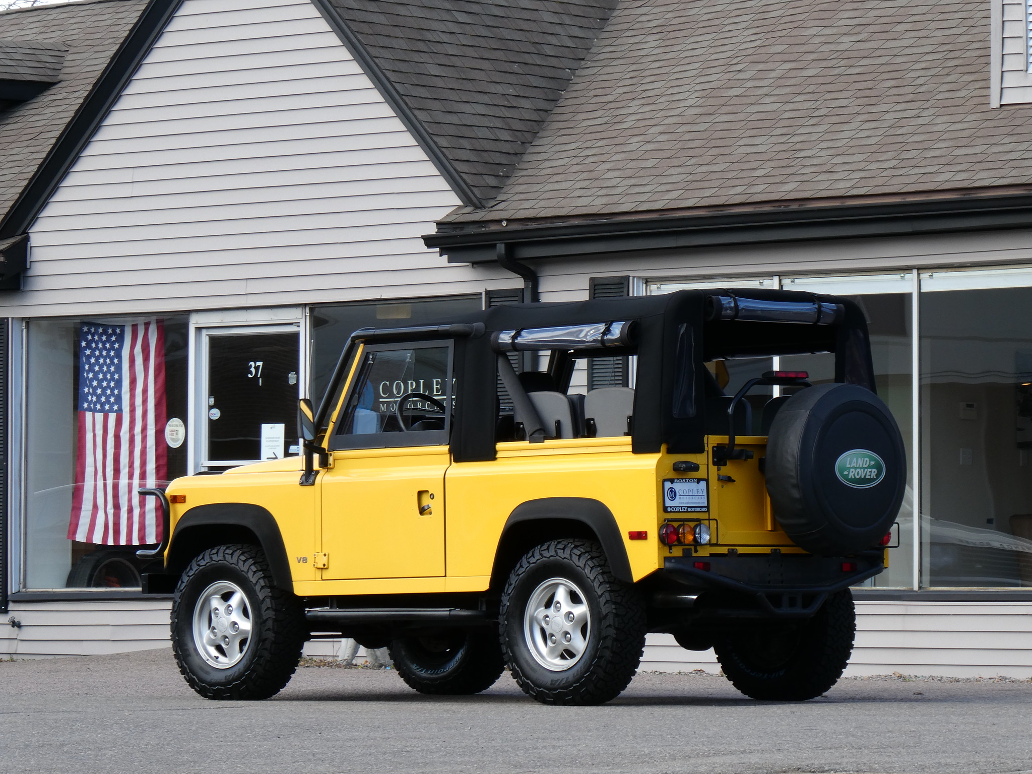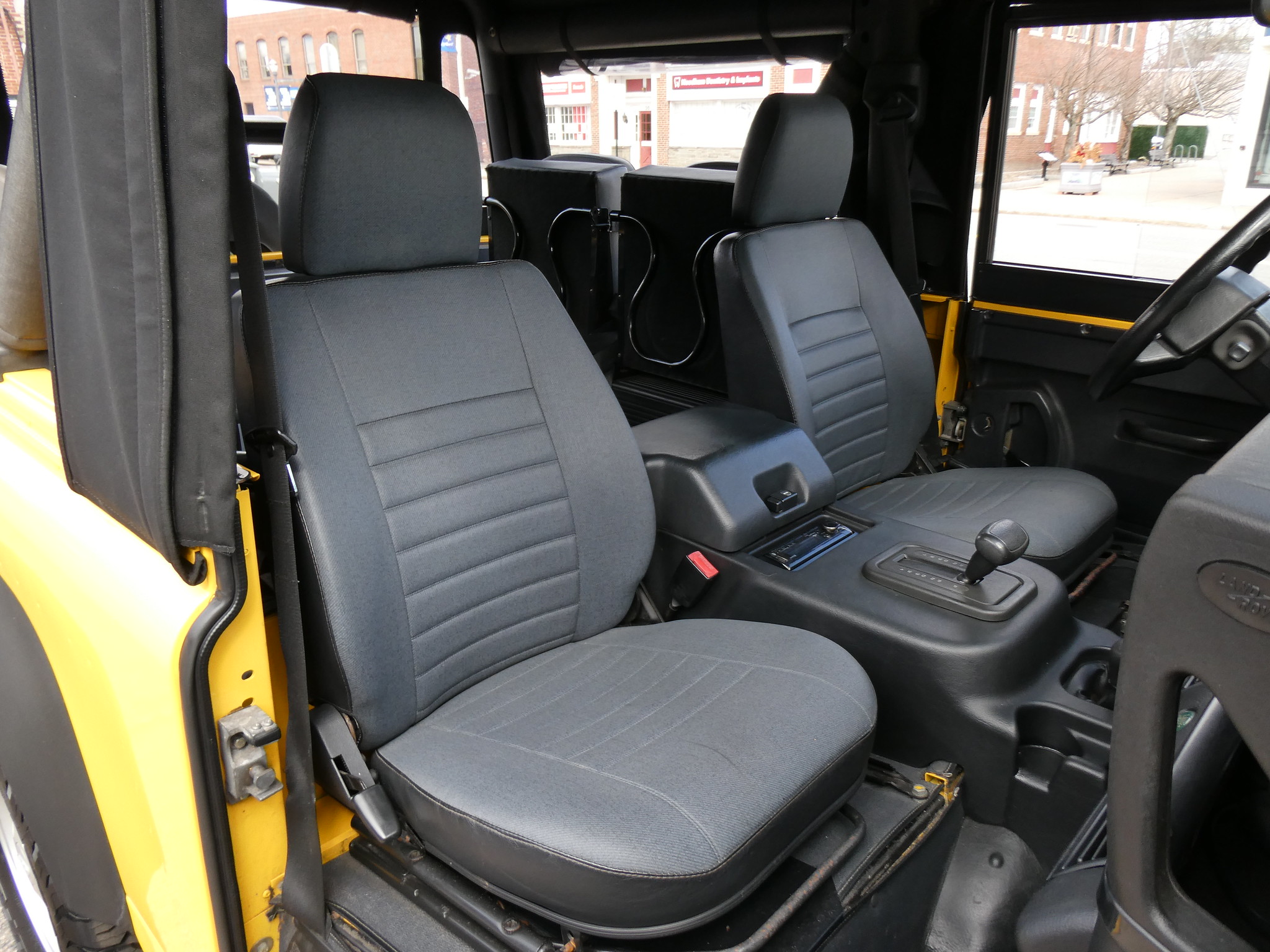 1997 Land Rover NAS Defender 90 soft top, S/N SALDV2246VA111502, AA Yellow with grey twill vinyl seat upholstery, full safari cage, full updated soft top with zip/roll-up windows, full time 4 wheel drive with high-low range, automatic transmission, air conditioning, Freestyle alloy wheels, front brush guard, front bumper integrated 9000lb Warn winch, side steps, rear lamp guards, 4 side facing rear seats with seat belts, delivered new June 30, 1997 via Land Rover Colorado Springs, complete with original owner’s manuals and spare keys, in the Copley family since 2009, an authentic North American Specification Defender 90, and one of just 371 in AA Yellow from the final year of import by Land Rover North America.