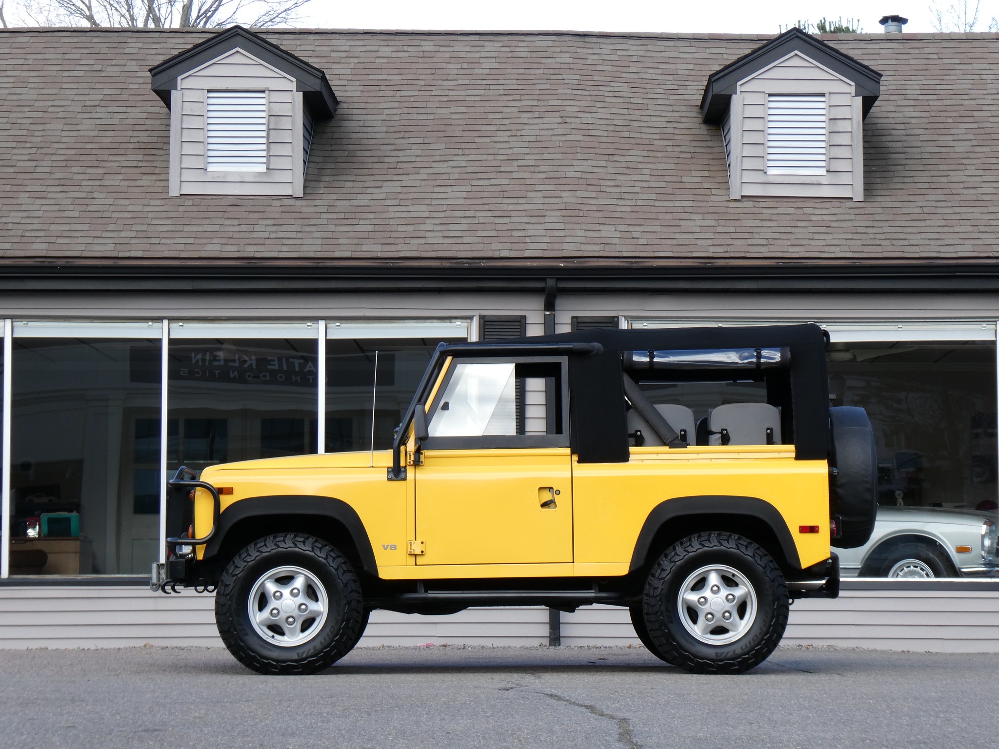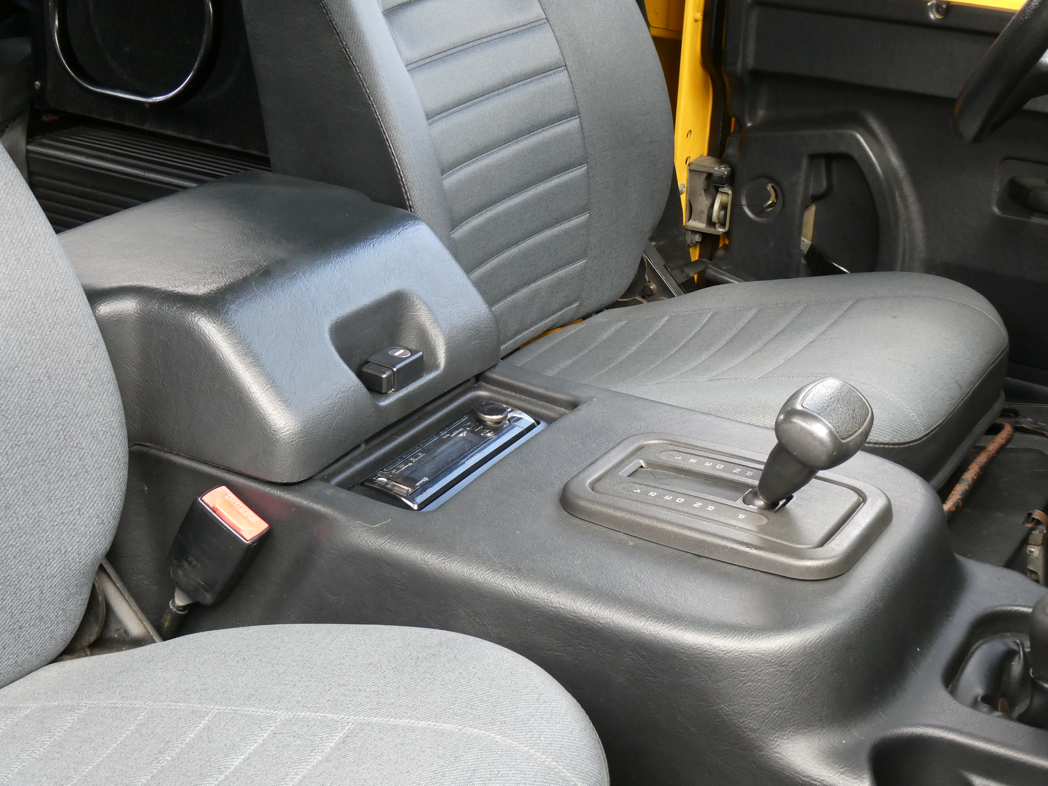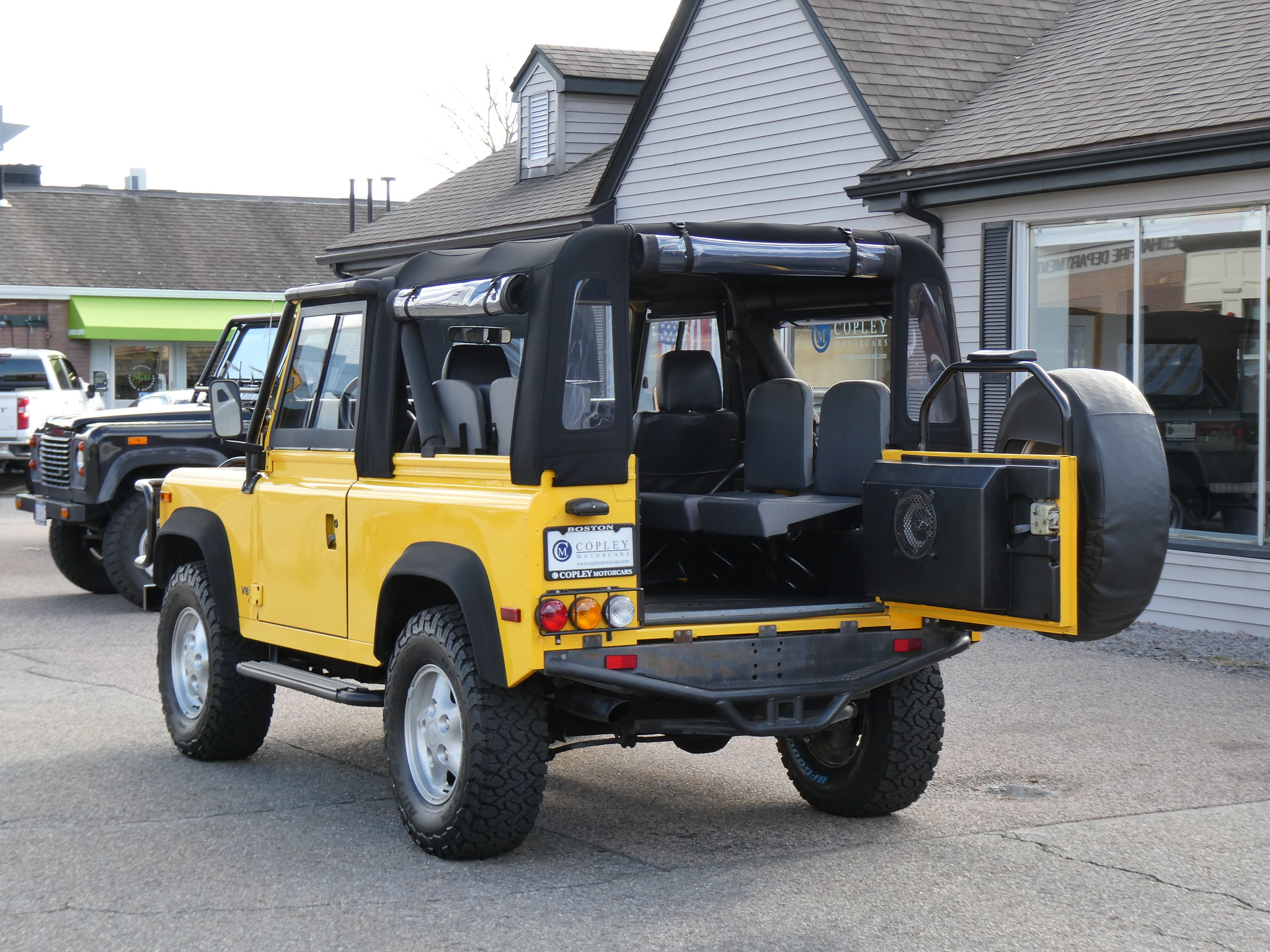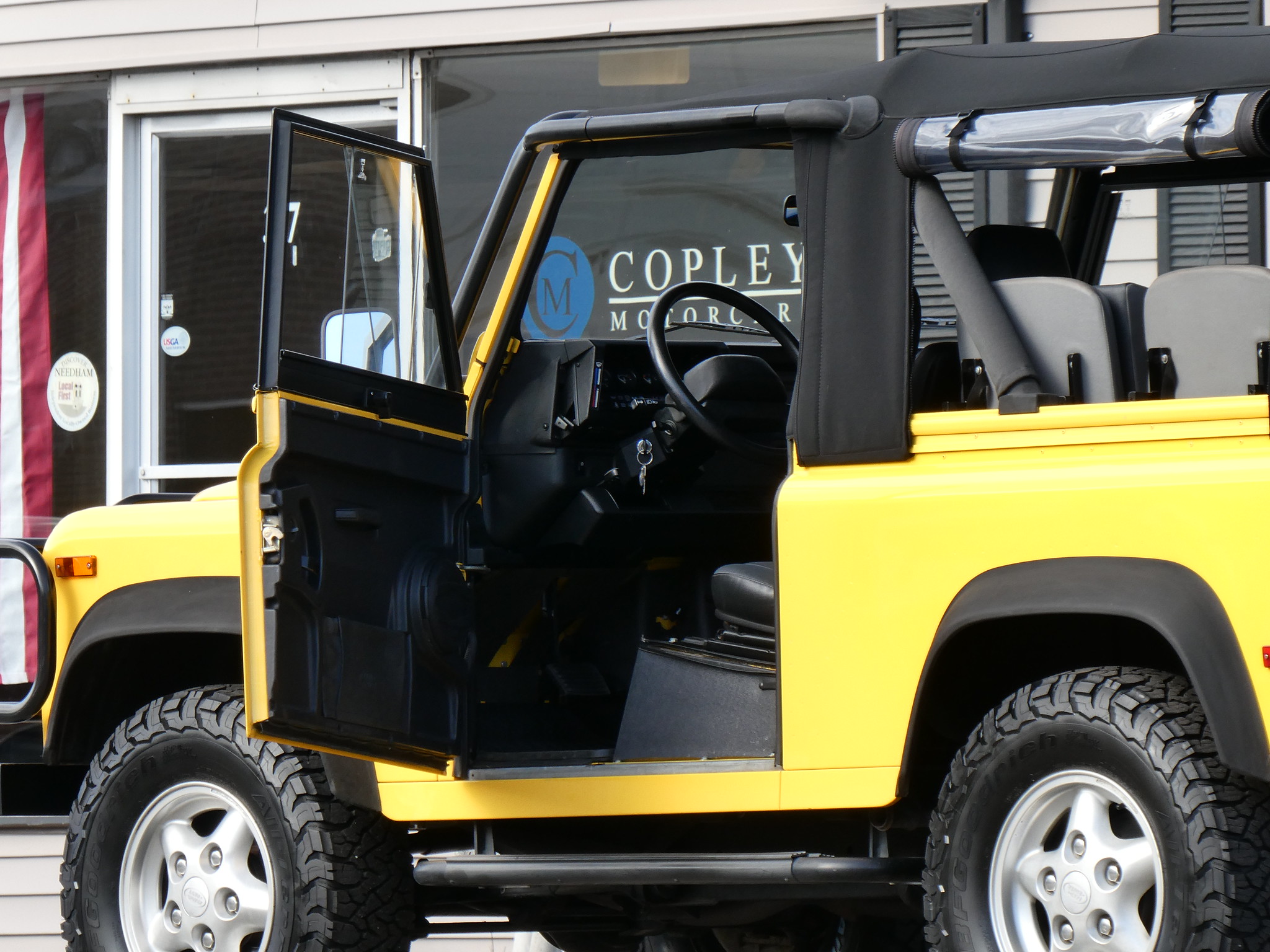 1997 Land Rover NAS Defender 90 soft top, S/N SALDV2246VA111502, AA Yellow with grey twill vinyl seat upholstery, full safari cage, full updated soft top with zip/roll-up windows, full time 4 wheel drive with high-low range, automatic transmission, air conditioning, Freestyle alloy wheels, front brush guard, front bumper integrated 9000lb Warn winch, side steps, rear lamp guards, 4 side facing rear seats with seat belts, delivered new June 30, 1997 via Land Rover Colorado Springs, complete with original owner’s manuals and spare keys, in the Copley family since 2009, an authentic North American Specification Defender 90, and one of just 371 in AA Yellow from the final year of import by Land Rover North America.