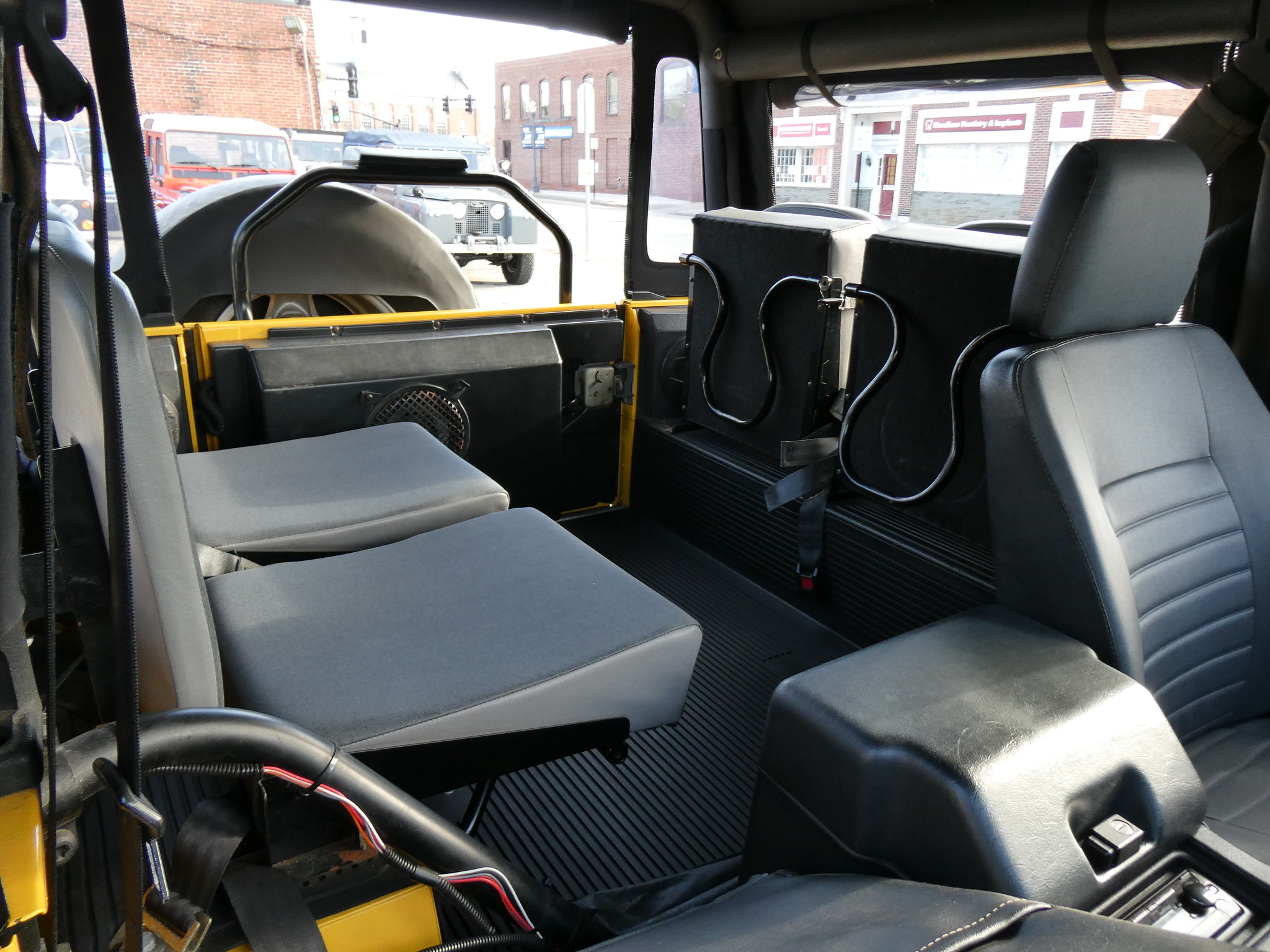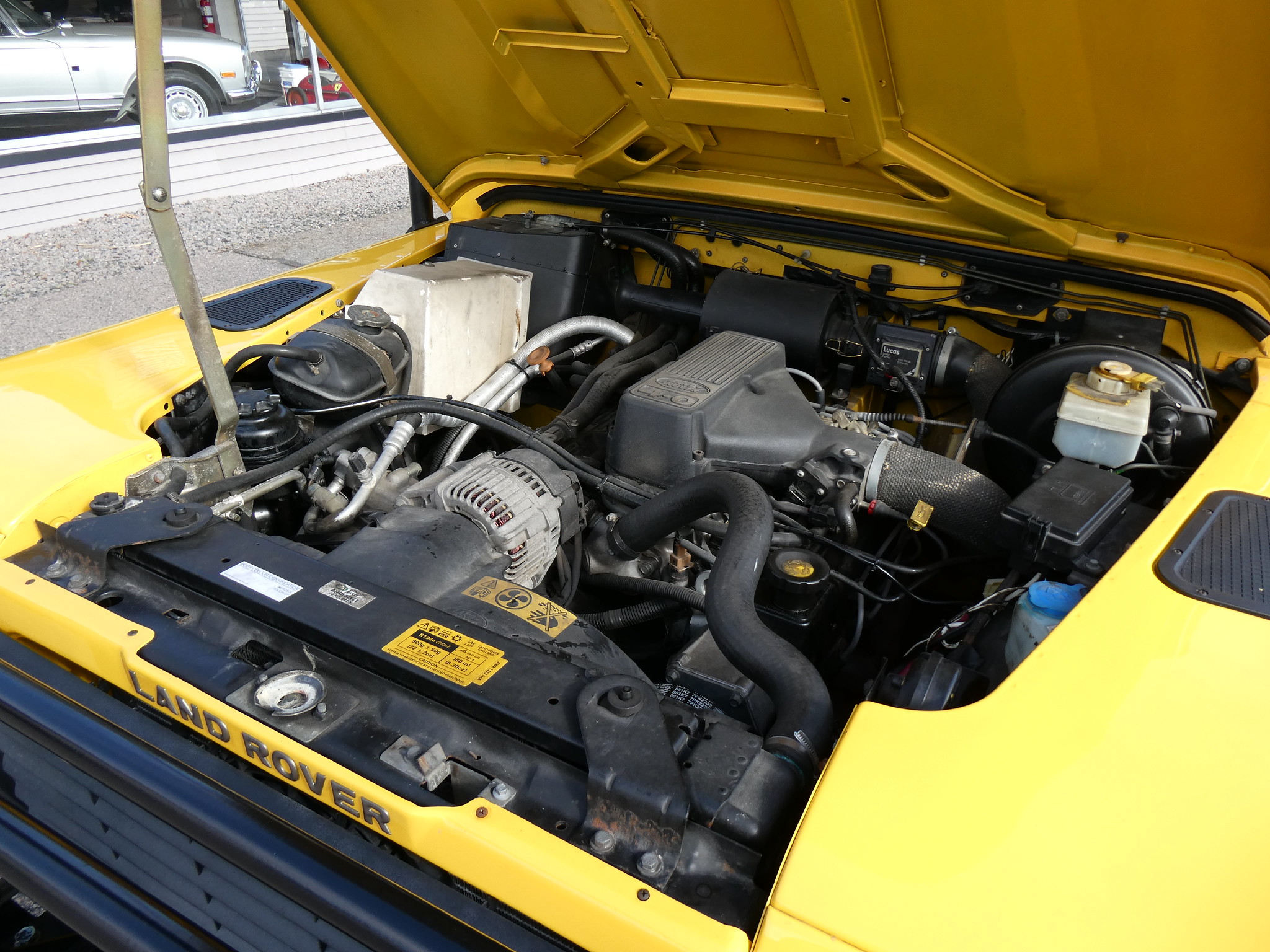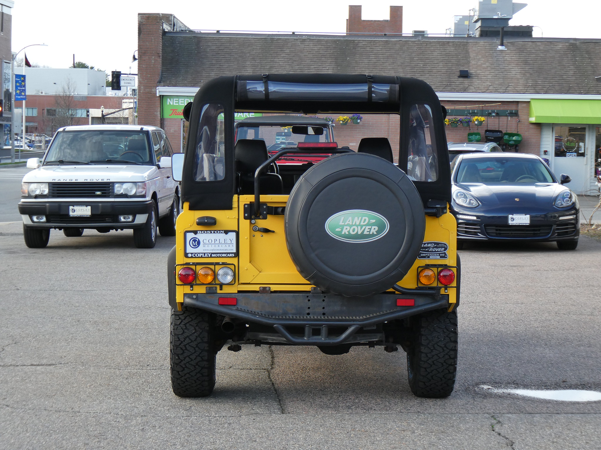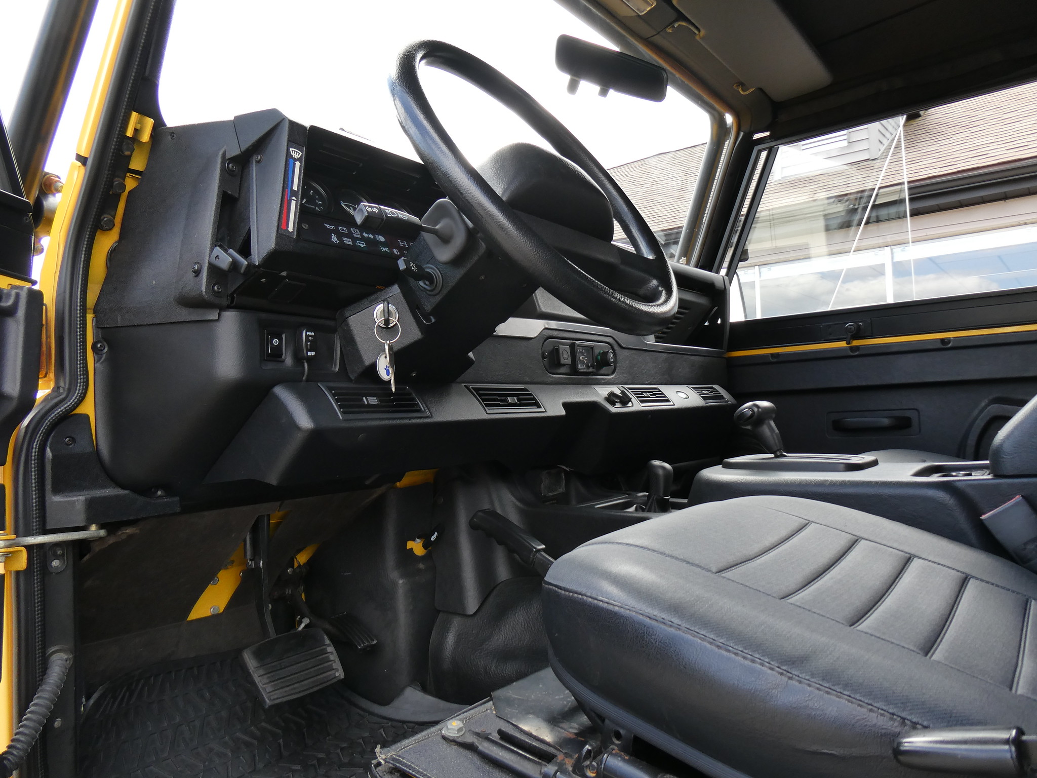 1997 Land Rover NAS Defender 90 soft top, S/N SALDV2246VA111502, AA Yellow with grey twill vinyl seat upholstery, full safari cage, full updated soft top with zip/roll-up windows, full time 4 wheel drive with high-low range, automatic transmission, air conditioning, Freestyle alloy wheels, front brush guard, front bumper integrated 9000lb Warn winch, side steps, rear lamp guards, 4 side facing rear seats with seat belts, delivered new June 30, 1997 via Land Rover Colorado Springs, complete with original owner’s manuals and spare keys, in the Copley family since 2009, an authentic North American Specification Defender 90, and one of just 371 in AA Yellow from the final year of import by Land Rover North America.